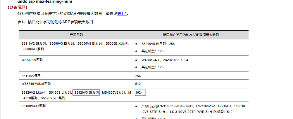 H3C S5120-28P-SI v5.20, Release 1519P06 ,發現 ARP 學習到 1000條就不學習了,請問這個機器 ARP 表數量是多少啊?